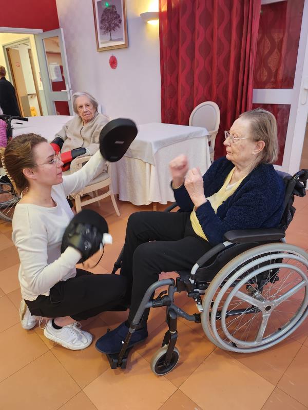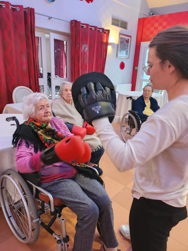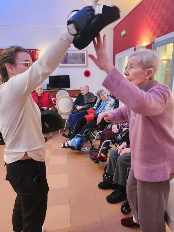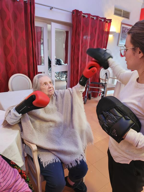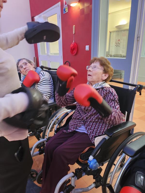 séance boxe en groupe avec 13 résidents