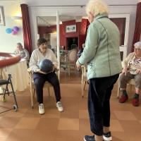 Publiée le 06/03/2026Jeu du basketball adapté avec 13 résidents - échauffement articulaire - travail de la passe et de la réception avec le ballon - lancer d'adresse avec le panier - petit jeu en trio, avec le ballon (1.2.3 soleil) - jeux de lancer avec le ballon et de mémoire des no [...] Lire la suite