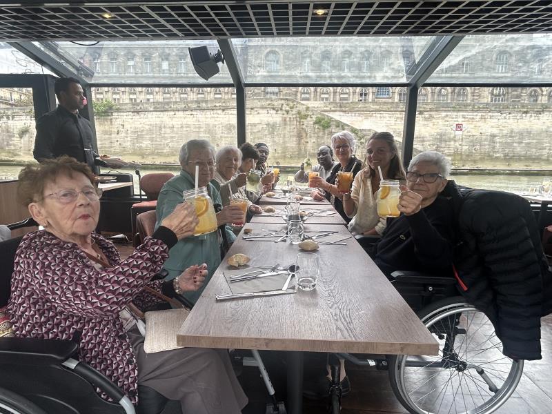 Le Colombier de Corbreuse > Actualités > Sortie en péniche à PARIS Sortie en péniche à PARIS Publiée le 23/09/2025 Aujourd'hui c'est PARIS ! Repas sur une péniche avec Patricia (animatrice), Océane (APA), Aïssatou (plongeuse) et Olga (AS)