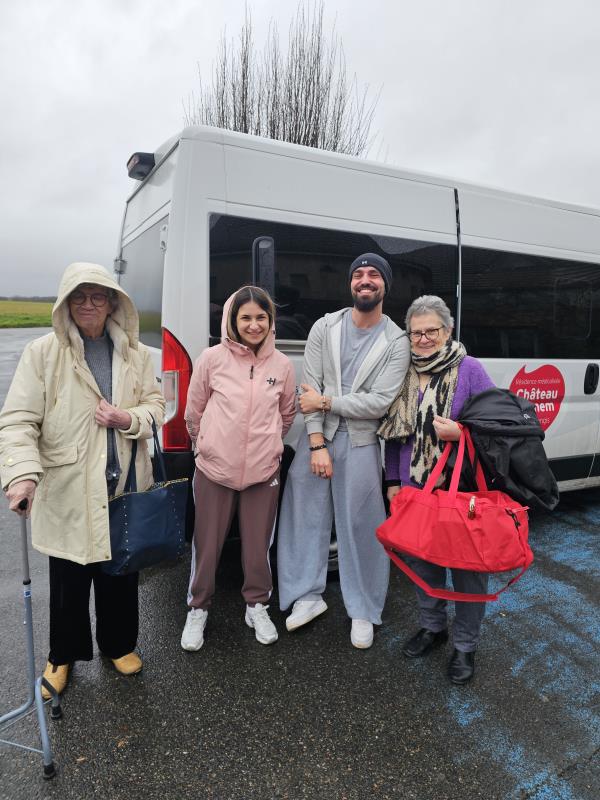 Voici une petite photo prise ce matin, au départ et sous la pluie, sur laquelle manque M. AMBROISE, déjà au chaud dans le minibus !